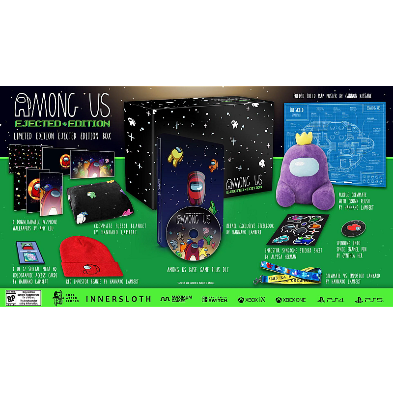 - Elemente DLC: Airship, Polus și MIRA HQ Skins, și pachetele Hamster Pet, Bedcrab Pet, Brainslug Pet, Stickmin Pet și Mini Crewmate.