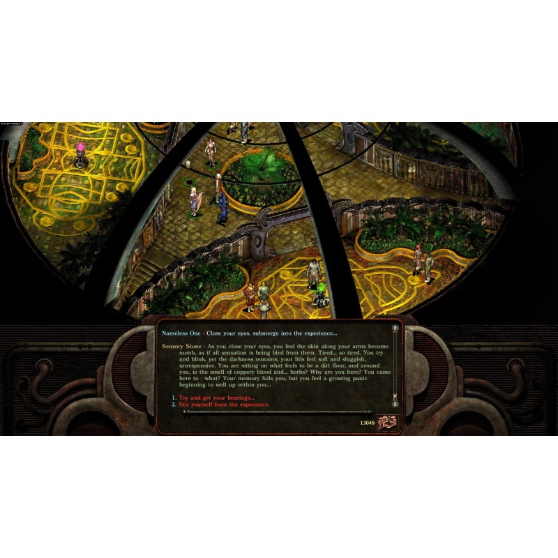 Ești împins să te trezești de Morte, un craniu plutitor și păstrător de secrete, pentru a te îmbarca într-o aventură care îl duce pe Cel Fără Nume de pe străzile murdare din Sigil în misterioasele Planuri Exterioare.