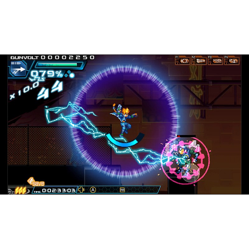În Azure Striker Gunvolt, preluați controlul mobilității de mare viteză a lui Gunvolt și a repertoriului de atacuri electrice pentru a face o treabă scurtă cu dușmanii dvs.