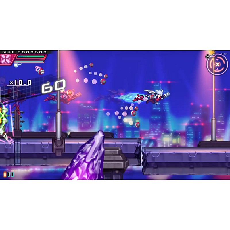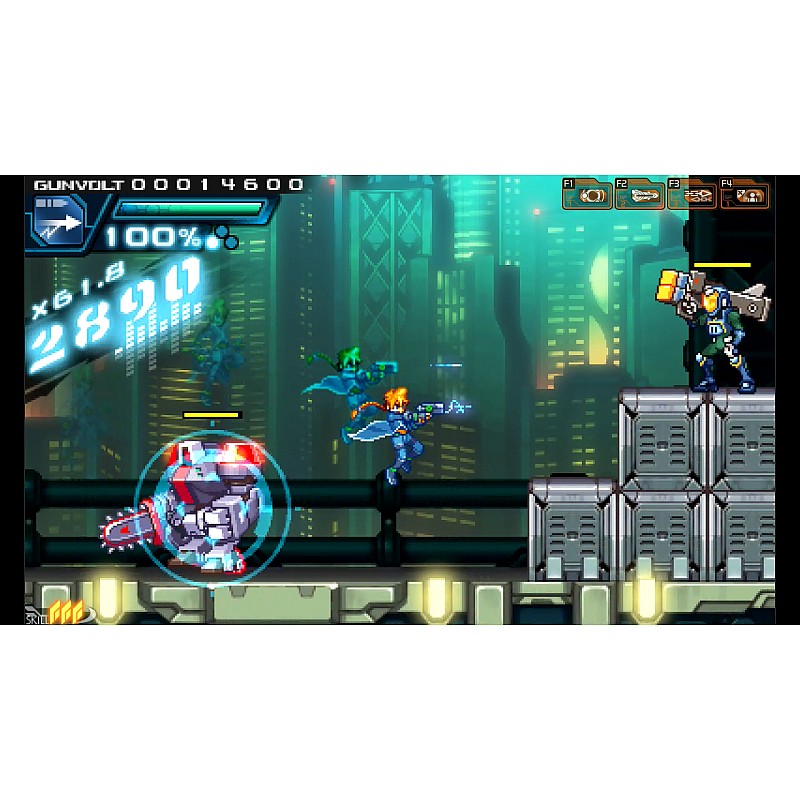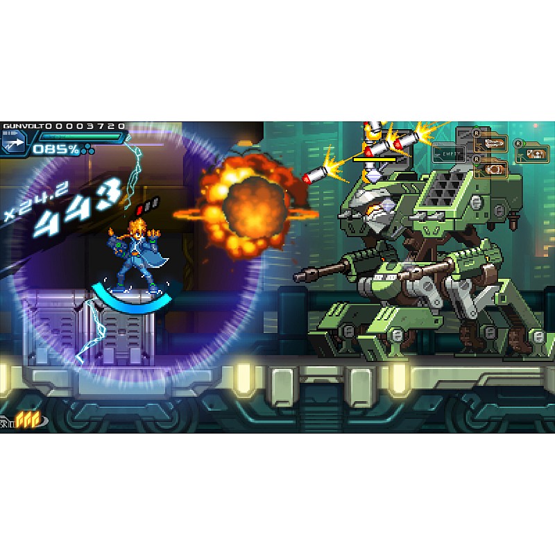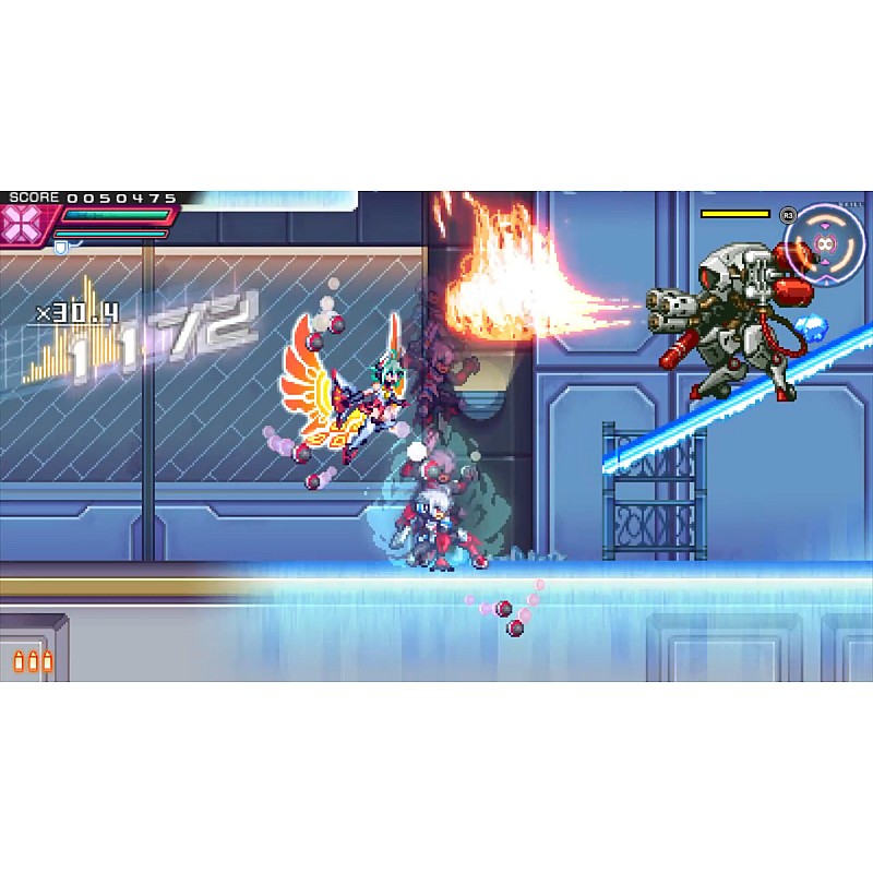 În "Azure Striker Gunvolt", preiei controlul mobilității de mare viteză a lui Gunvolt și al repertoriului de atacuri electrice pentru a face o treabă scurtă cu inamicii tăi.