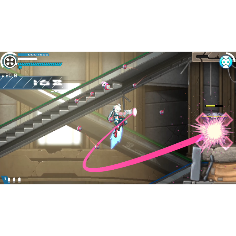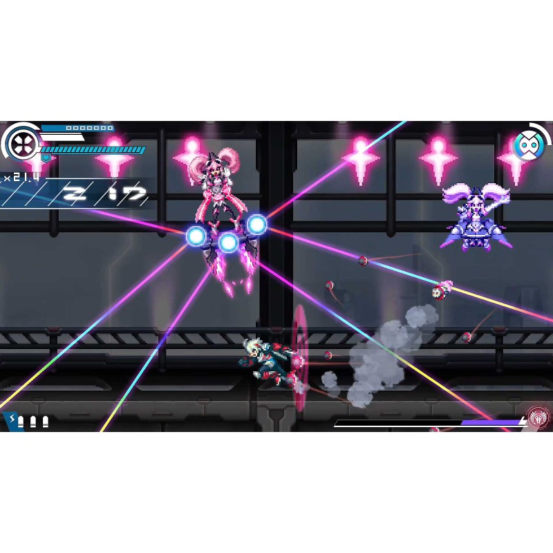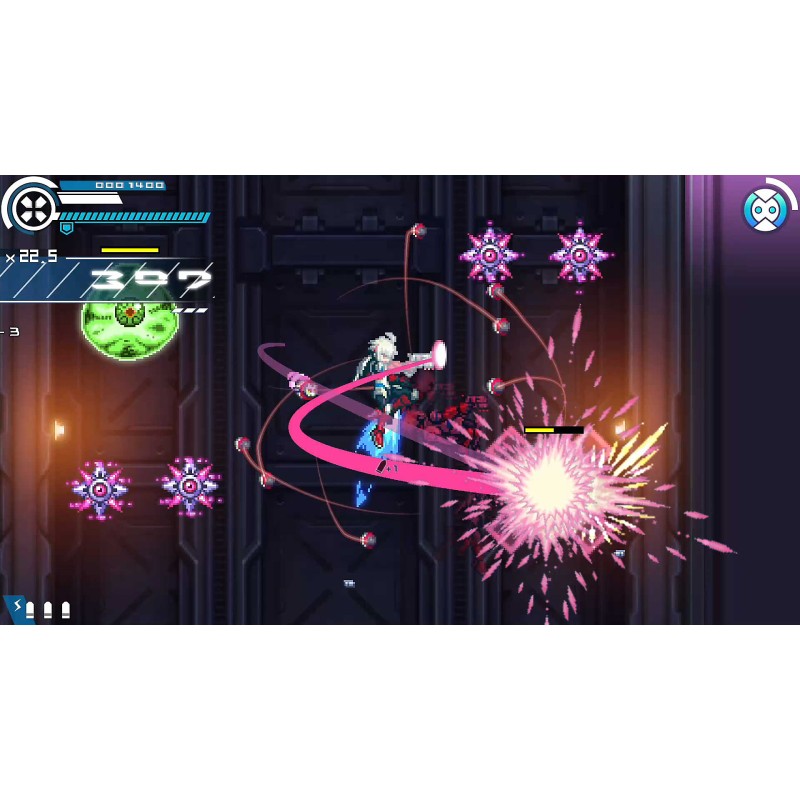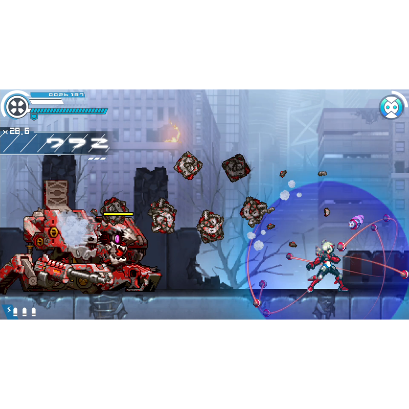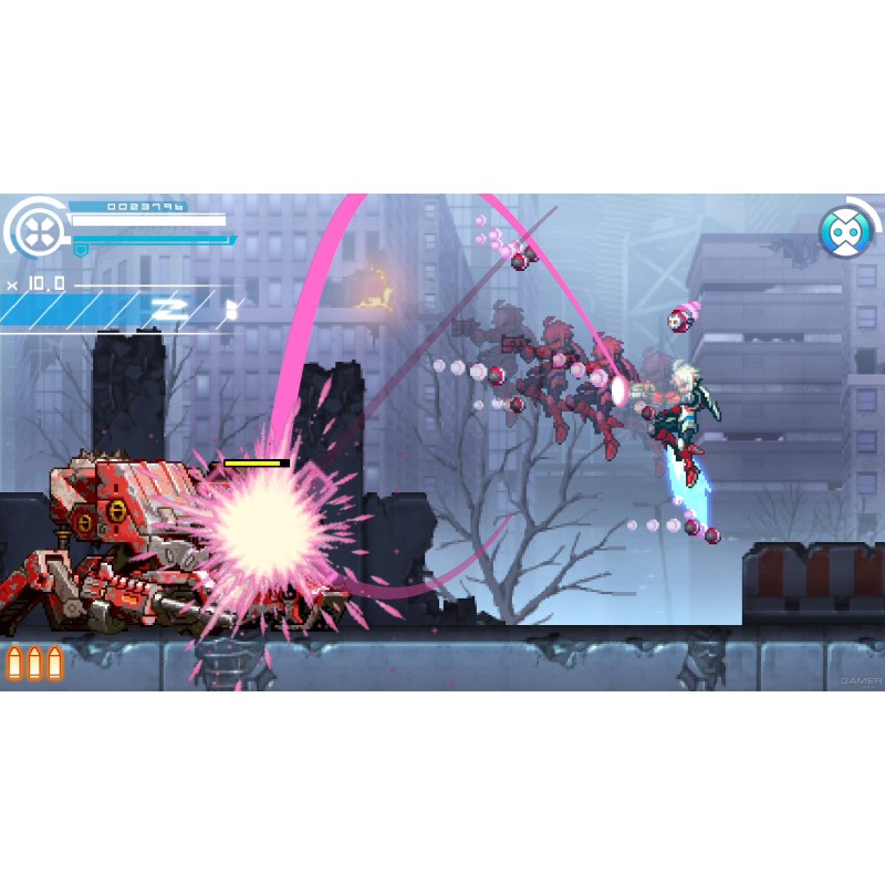 Eroul, Copen, se poate arunca în inamici pentru a-i bloca, astfel încât loviturile sale să nu-și piardă niciodată semnul. Pune-ți la încercare ingeniozitatea și poți folosi „Bullit Dash” pentru a zbura prin etape fără a atinge solul! Aveți la dispoziție multe instrumente, așa că faceți-vă să găsiți un stil care să funcționeze pentru dvs. și să cuceriți fiecare etapă cu stil.