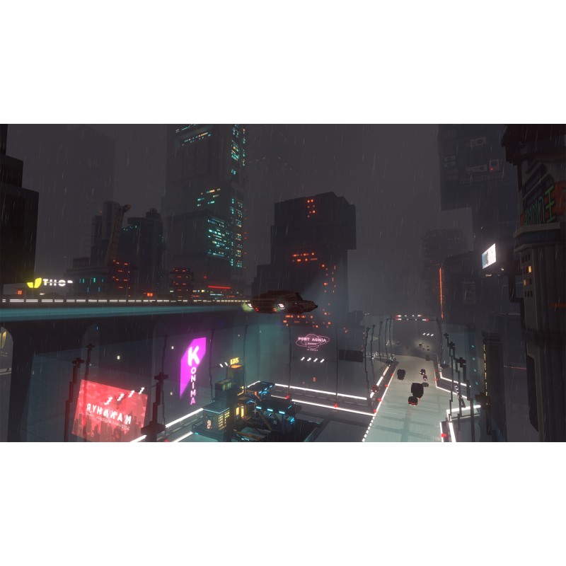 • Explorați un imens oraș vertical cyberpunk cu mașina dvs. de zbor și pe jos