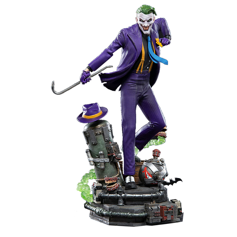 Cu un look mai contemporan, dar fără a-și lăsa trecutul în urmă, combinând culori și elemente clasice, îmbrăcat în mov, completat cu o cămașă neagră, bretele portocalii și o cravată albastră, Jokerul primește încă o versiune derivată din benzile desenate DC Comics de către Iron Studios.