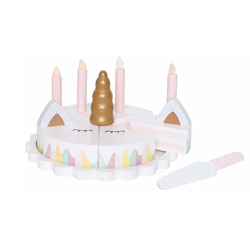 Acest delicios tort unicorn din lemn cu șase felii mari și un corn și luminițe, îl va face pe copilul dvs. foarte popular la petrecerile sale.