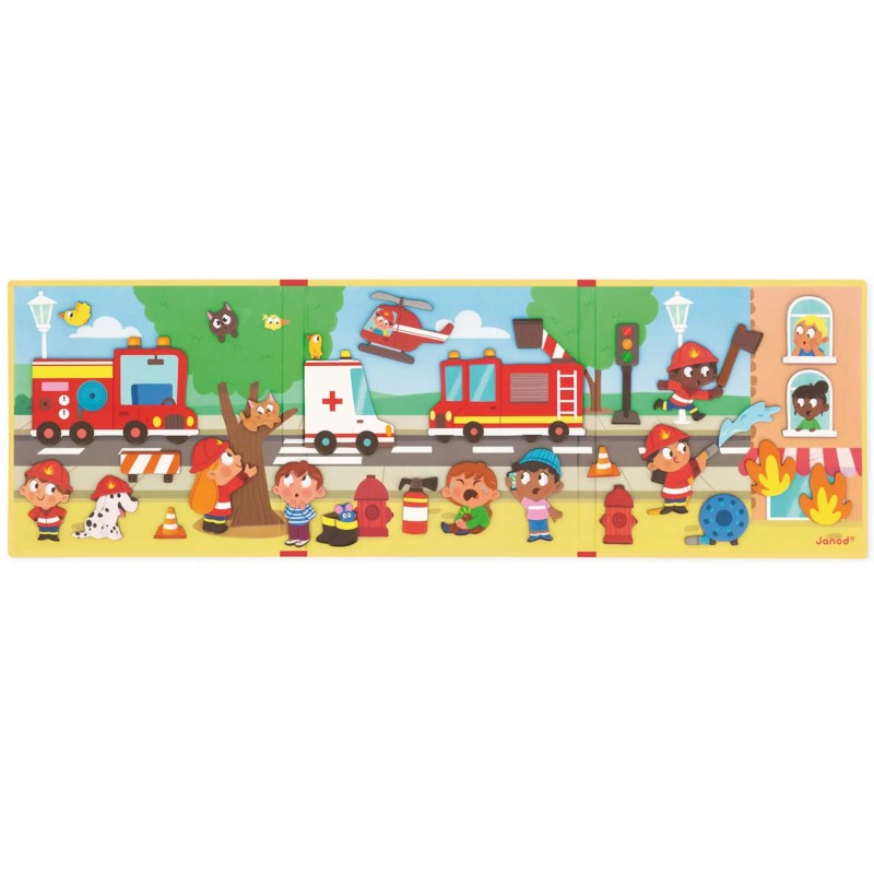 Acest joc magnetic îi va încânta pe copii în timp ce își asumă rolul pompierilor.