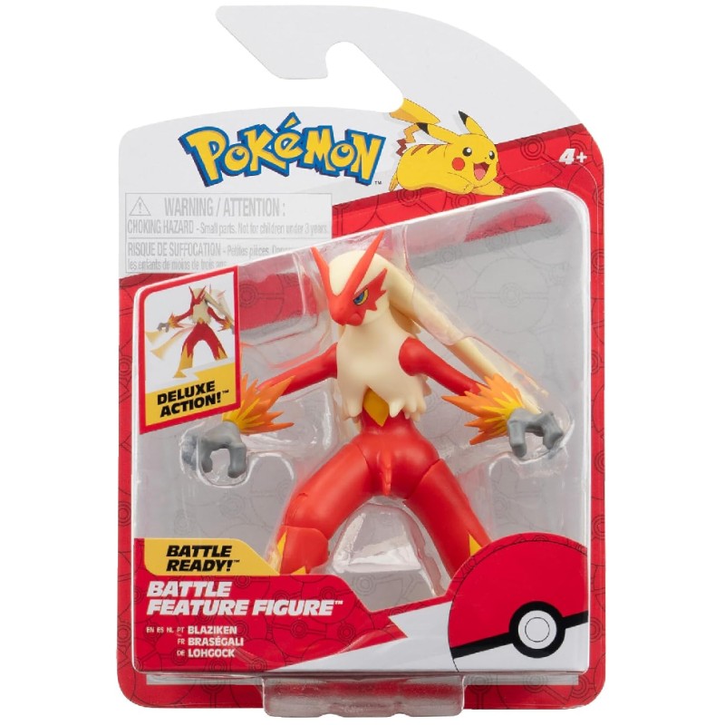 Adaugă-l pe Blaziken în echipa ta de Pokémon și fii atent la alte figurine Battle Feature Figures.