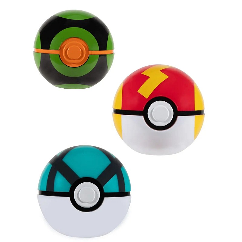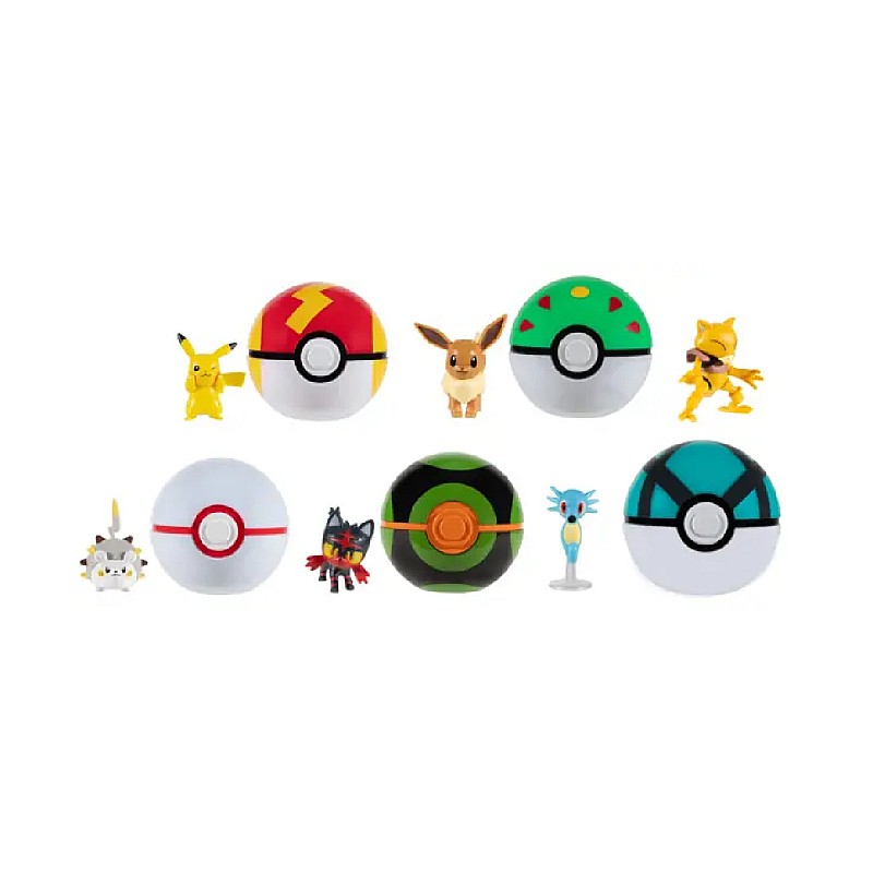Fiecare set include o Poké Ball și un personaj Pokémon, trebuie doar să deschizi zăvorul pentru a descoperi personajul din interior.
