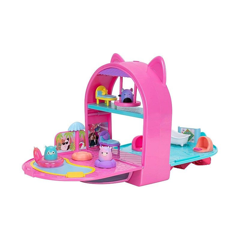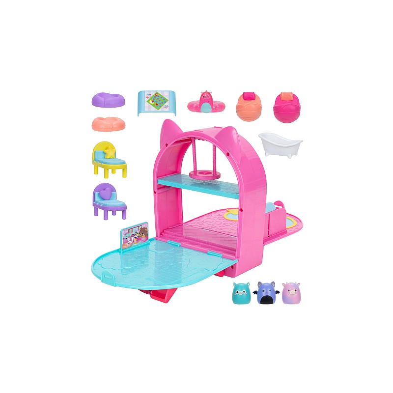 Este destinația de petrecere supremă cu mai multe zone de joacă, inclusiv un lounge la etajul al doilea cu un leagăn funcțional, 3 Mini-Squish și 9 mobilier Squish.
