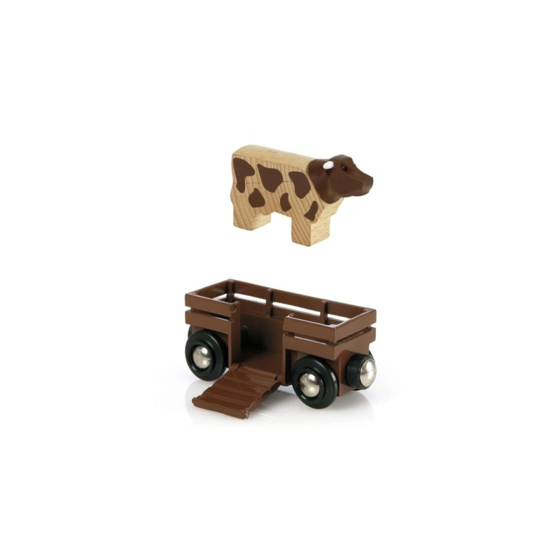Când este timpul să mutați animalele, așezați-le pe vagonul pentru animale cu ajutorul rampei rabatabile și transportați vagonul cu trenul fermei.