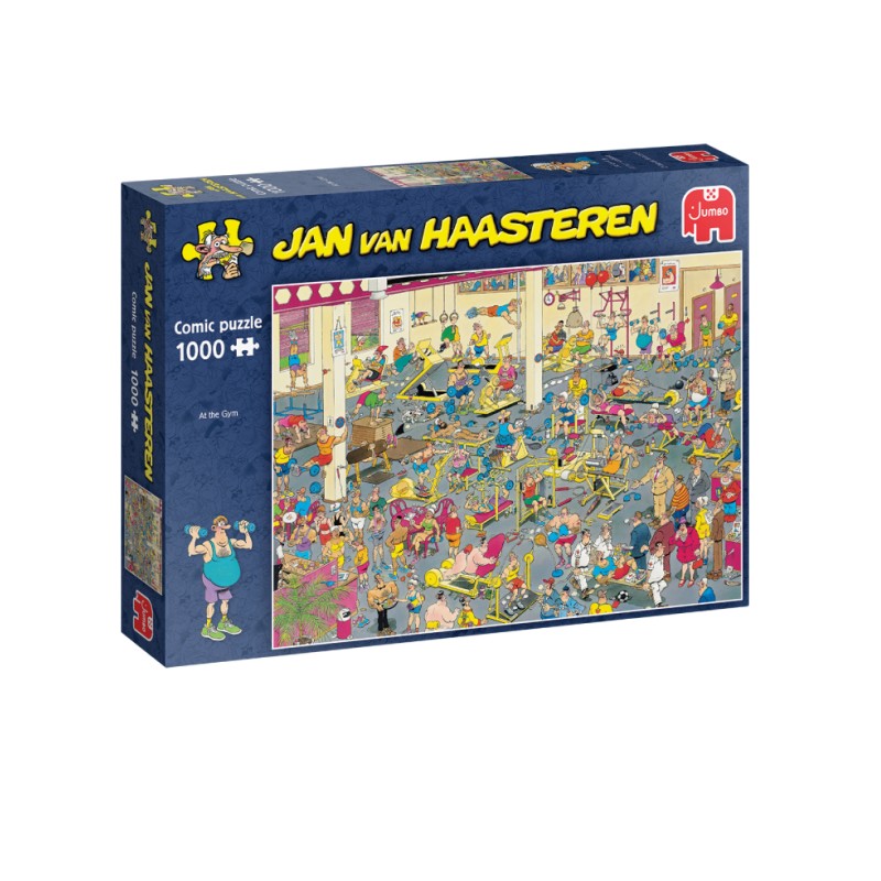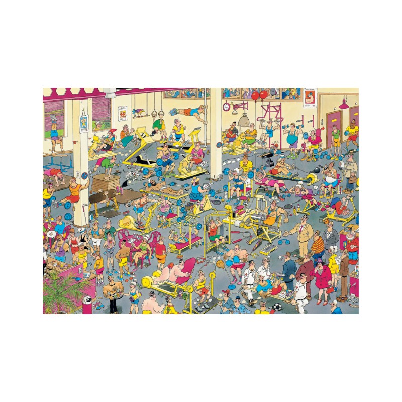 Intră în lumea amuzantă și plină de energie a fitness-ului cu puzzle-ul „At the Gym” de la Jan Van Haasteren.