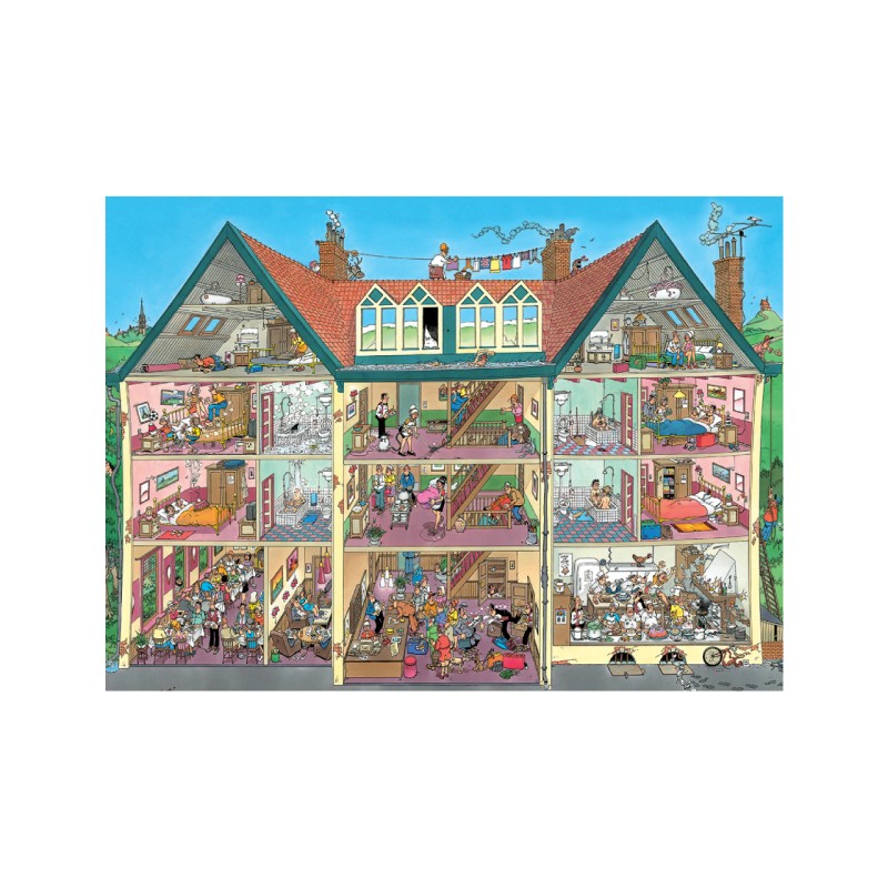 De la bucătărie la acoperiș, niciun loc nu este ferit de haosul tipic al lui van Haasteren.