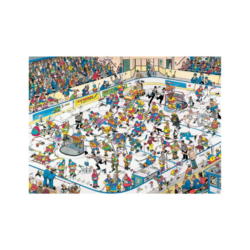 Puneți-vă patinele și pregătiți-vă pentru o scufundare amuzantă în cel mai haotic joc de hochei pe care l-ați văzut vreodată cu puzzle-ul Jan van Haasteren „Hochei pe gheață” cu 1000 de piese.