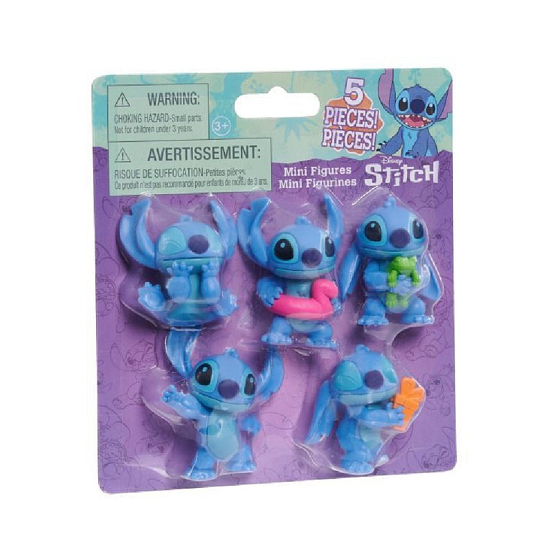 Disney Stitch Figures 5 Pack este un set de colecție adorabil care include 5 mini-figurine cu personajul îndrăgit Stitch din filmul de animație Lilo & Stitch.
