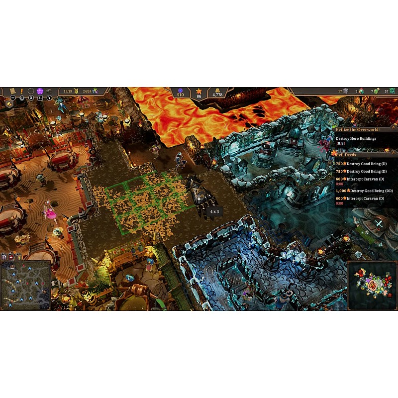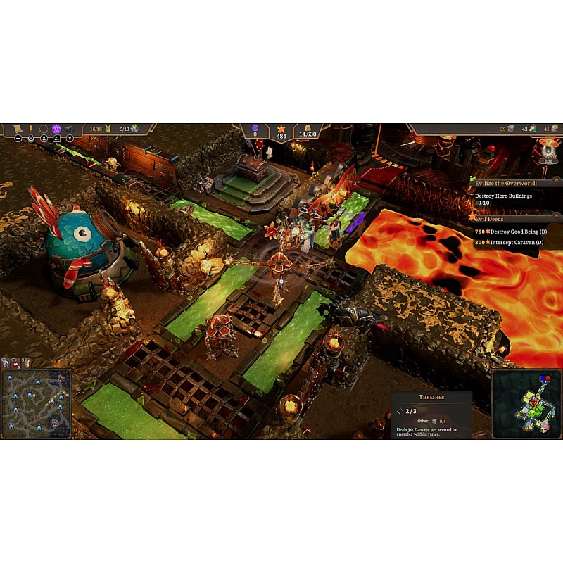 - Schimbă lumea: Stabilește-ți baza de pornire malefică pe hărțile vaste Underworld și pregătește-te să-ți răspândești Răutatea prin uriașa Overworld, transformând mediile luxuriante în partea întunecată.