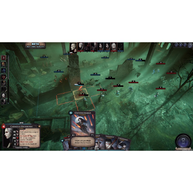 - Fiecare clan și lord vampir are acces la propriul set de cărți, care pot fi sinergizate în combinații puternice.