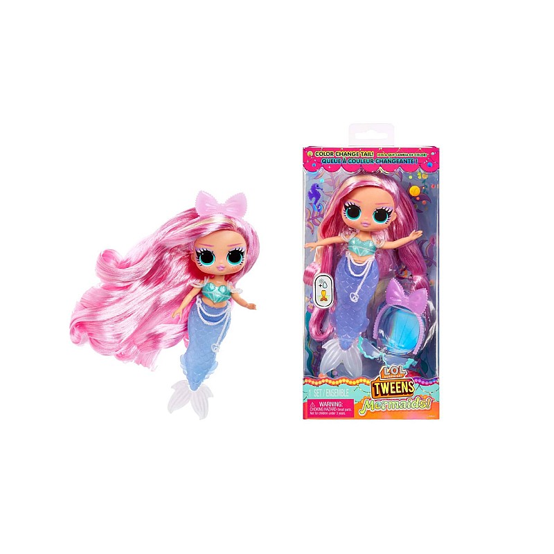 Pregătește-te să plonjezi într-o lume fermecătoare a distracției magice a sirenelor cu noua păpușă de modă LOL Surprise Tweens Mermaid Lola Waves, cu accesorii orbitoare de desfăcut!
