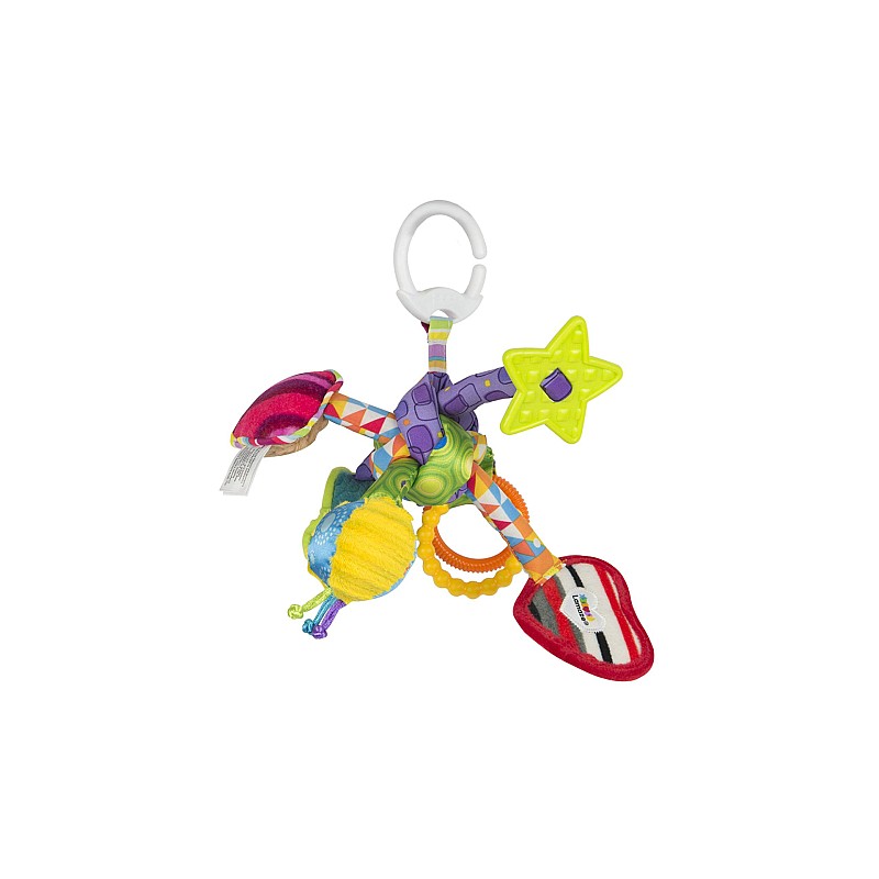 Lamaze Tug and Play Knot este o jucărie amuzantă pe care o puteți atașa la cărucior sau la scaunul de mașină cu ajutorul inelului de prindere la îndemână.