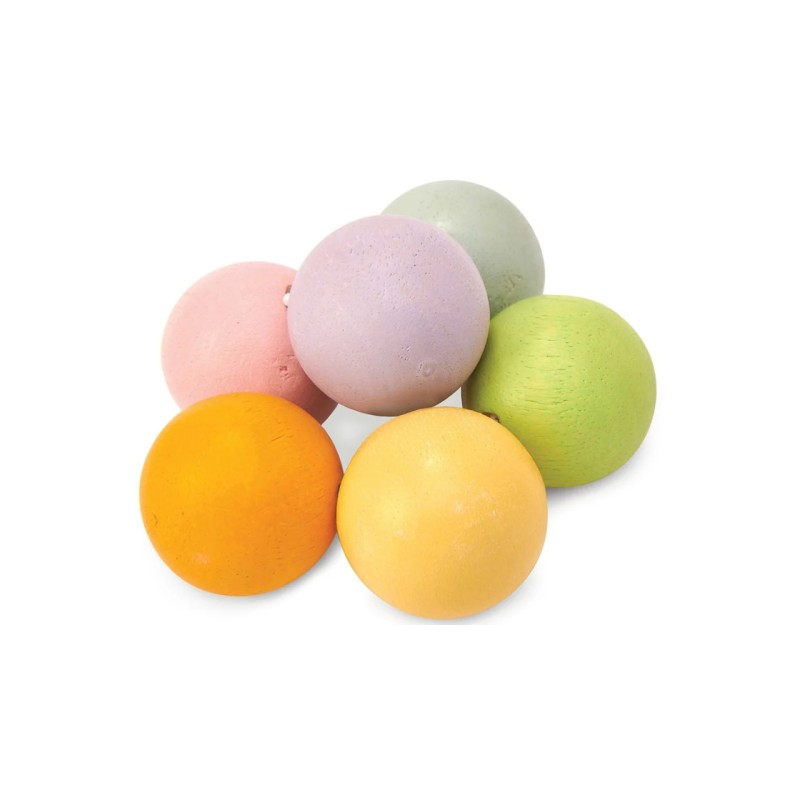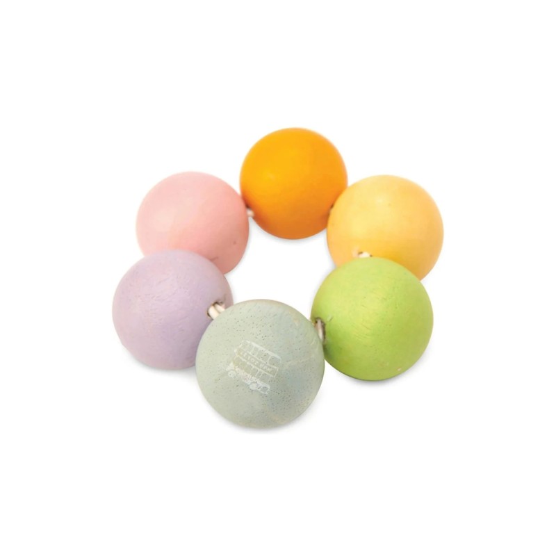 Șase mărgele din lemn de cauciuc pentru bebeluși, înșirate împreună cu un cordon elastic puternic,