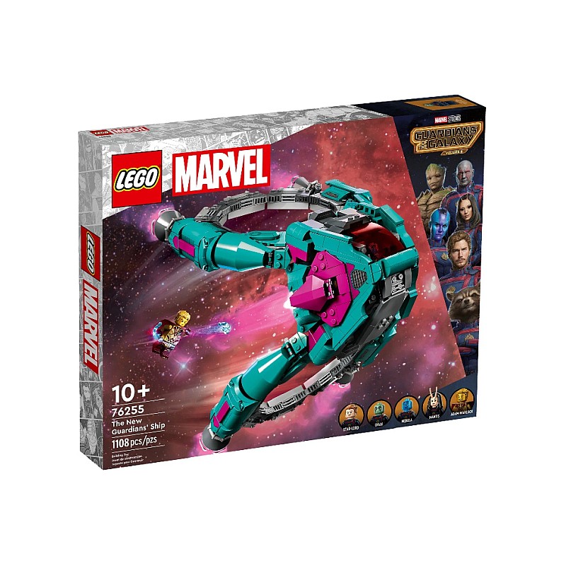 Nava LEGO Marvel The New Guardians' Ship (76255) pune în mâinile copiilor vedeta călătoarelor spațiale din Guardians of the Galaxy Volume 3 al studiourilor Marvel.