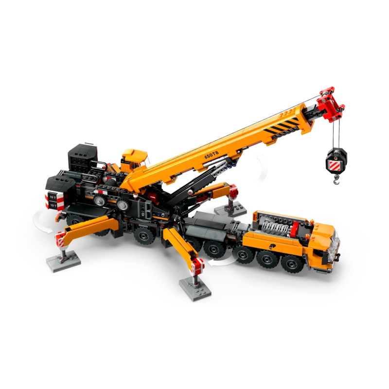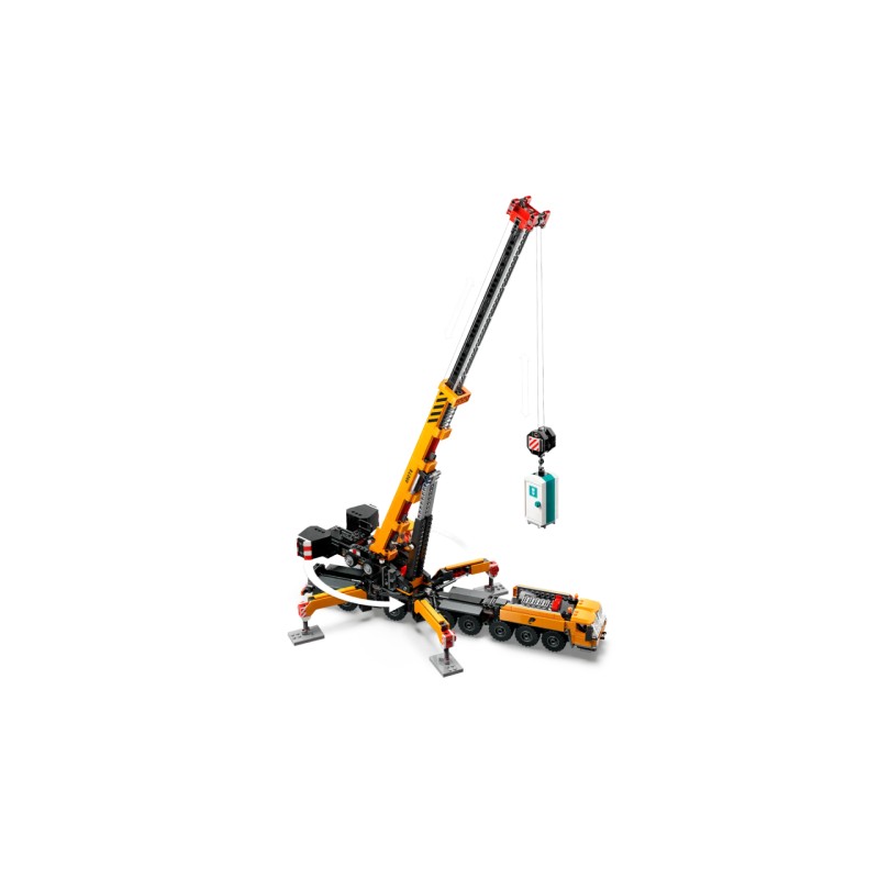 Acest model impresionant vine cu o mulțime de funcții realiste. Copiii pot plia picioarele de susținere, pot pivota cabina, pot extinde și roti brațul la 360 de grade și pot acționa dispozitivul de ridicare.