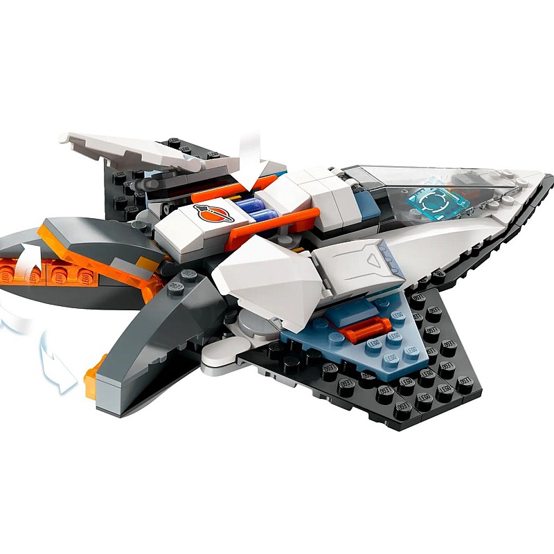 Această navă spațială cu un singur loc este proiectată să atingă viteze amețitoare. Setul include și o dronă robotică care se transformă într-un jetpack.