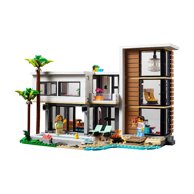 Băieții și fetele cu vârsta pot explora 3 case de jucărie LEGO® diferite cu acest set de joacă plin de distracție Casa modernă (31153).