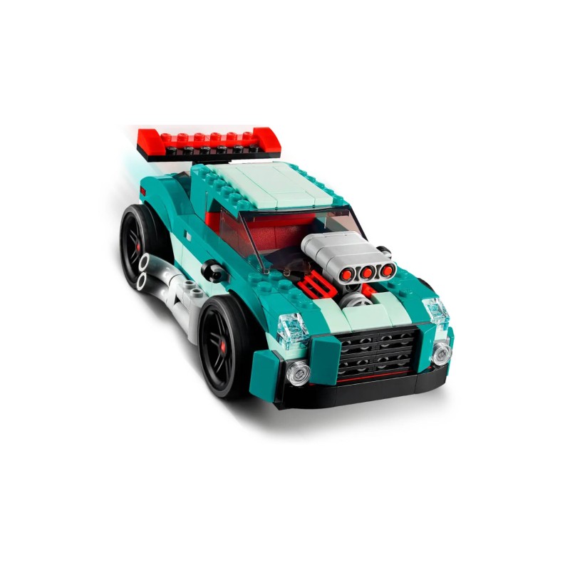 Fanii mașinilor ultrarapide pot ajunge pe străzi sau pe circuit cu acest set de construcție uimitor LEGO Creator 3in1 Street Racer.