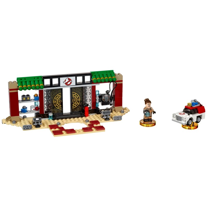 Setul include Zhu's Chinese Restaurant pentru LEGO Toy Pad, Abby Yates și Ecto-1.