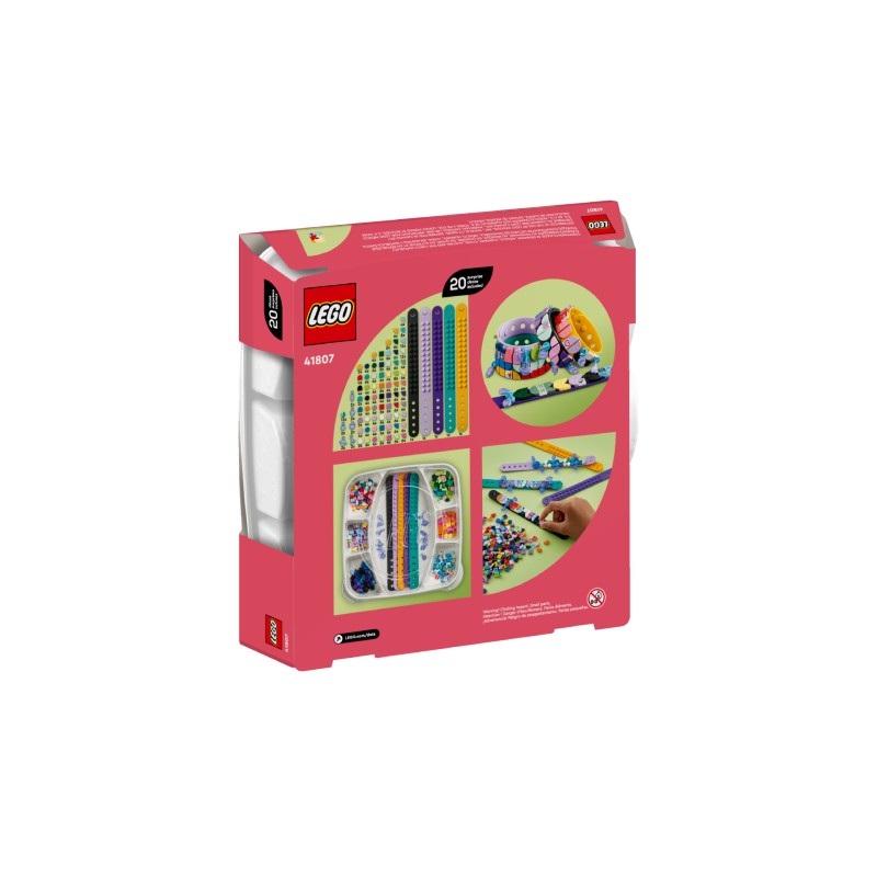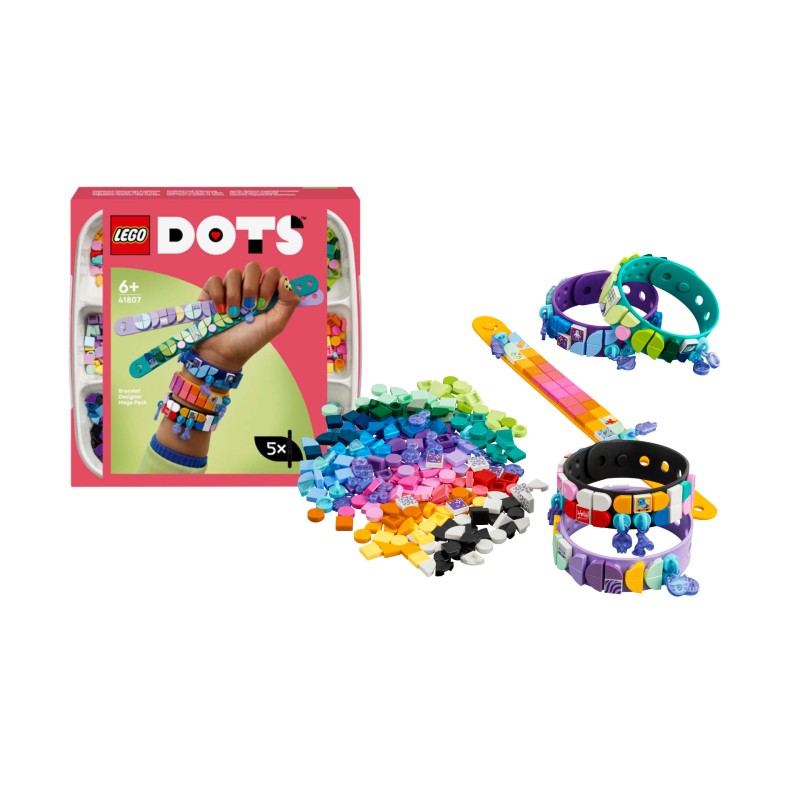 Acest kit pentru copii pentru crearea de brățări ale prieteniei are o tavă cu 5 brățări de jucărie în 5 culori diferite și 350+ dale DOTS.