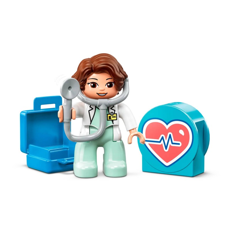 Micilor doctori și asistente le vor plăcea activitățile distractive și medicul prietenos care figurează în LEGO DUPLO Rescue Doctor Visit, faceți cunoștință preșcolarilor cu activitățile distractive care au loc la o clinică medicală.