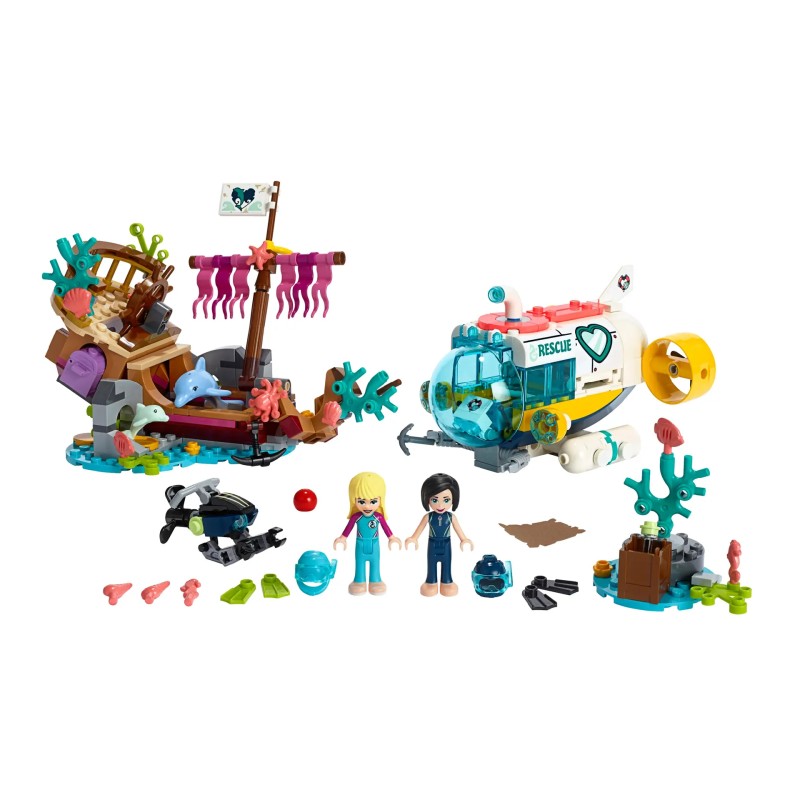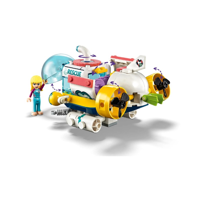Acest set de joacă cu delfini le permite copiilor să joace o misiune de salvare LEGO subacvatică, în timp ce Stephanie se scufundă în ambarcațiunea ei submersibilă cool pentru a elibera un delfin lovit de o epavă.