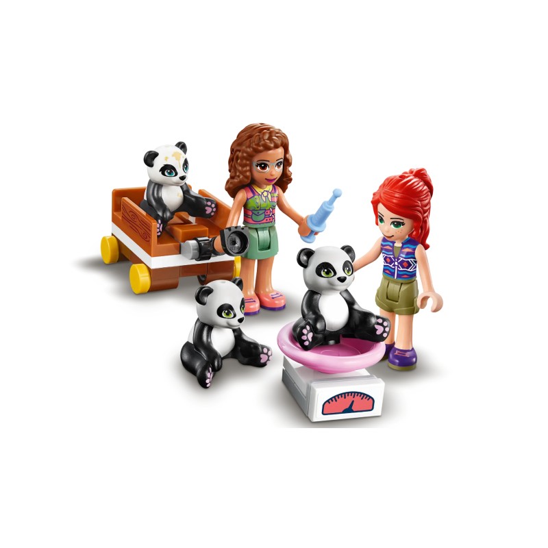 Copiii isi pot petrece ore intregi jucand rolul salvatorilor si creand povesti pentru figurinele mini-papusi construibile si 3 minifigurine panda. Setul are bare pentru maimute, balansoar si un tobogan, ceea ce il face locul de joaca perfect pentru panda.