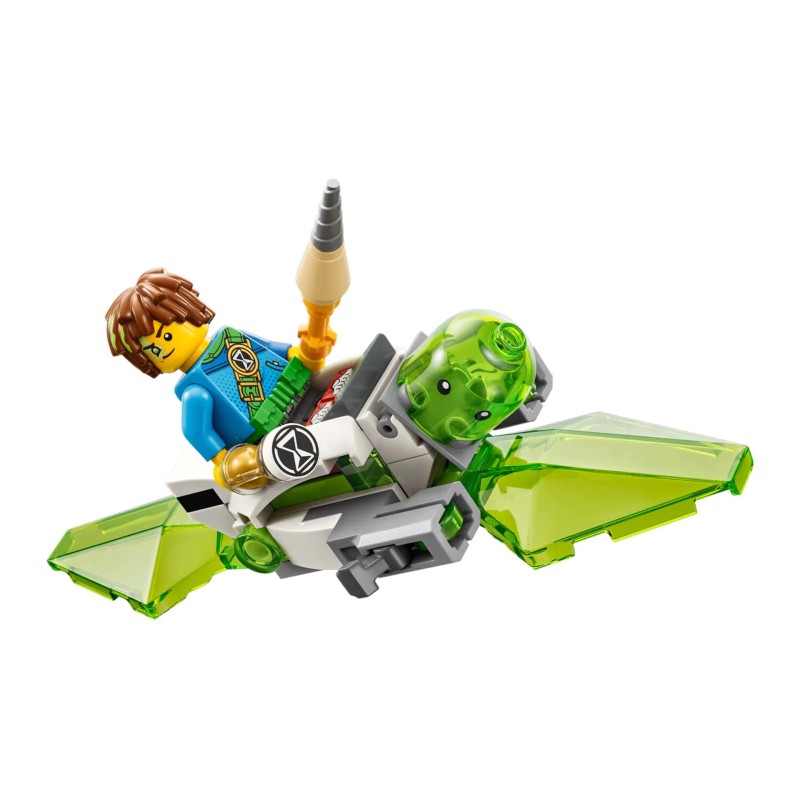 Acest lucru le permite copiilor să își aleagă propria cale și să se bucure de un timp de joacă dublu. Minifigurinele lui Mateo și Cooper aduc acțiunea la viață. Accesoriile lor includ o curea, o suliță cu creion și o clepsidră.