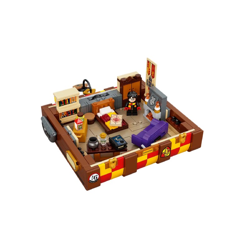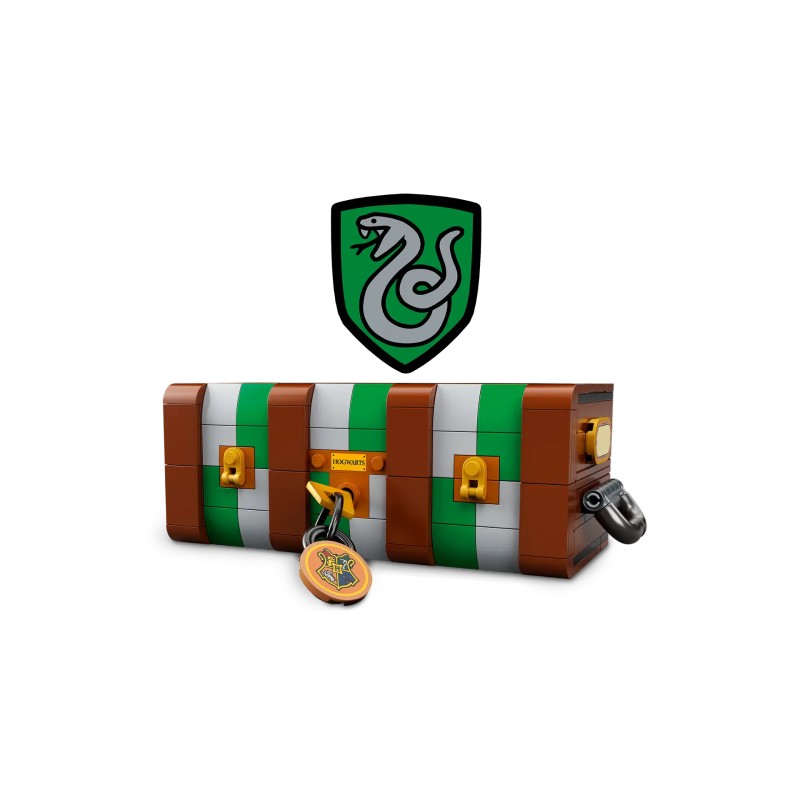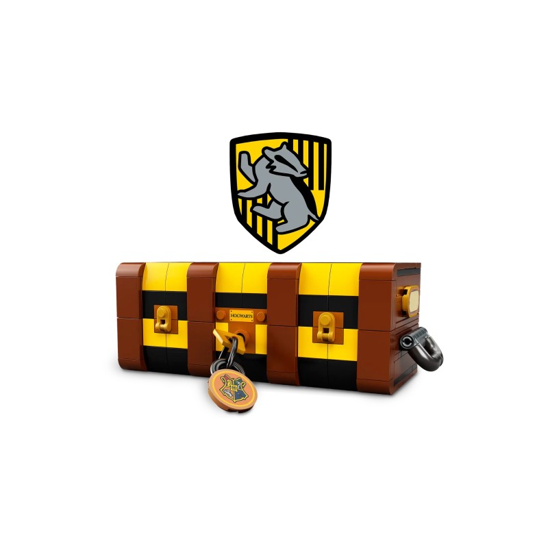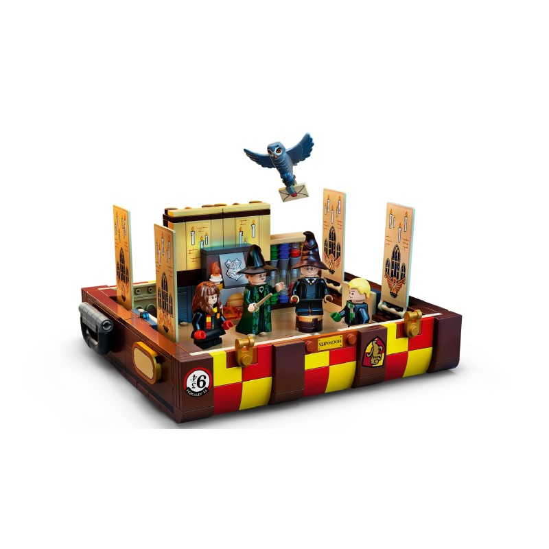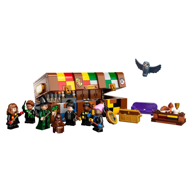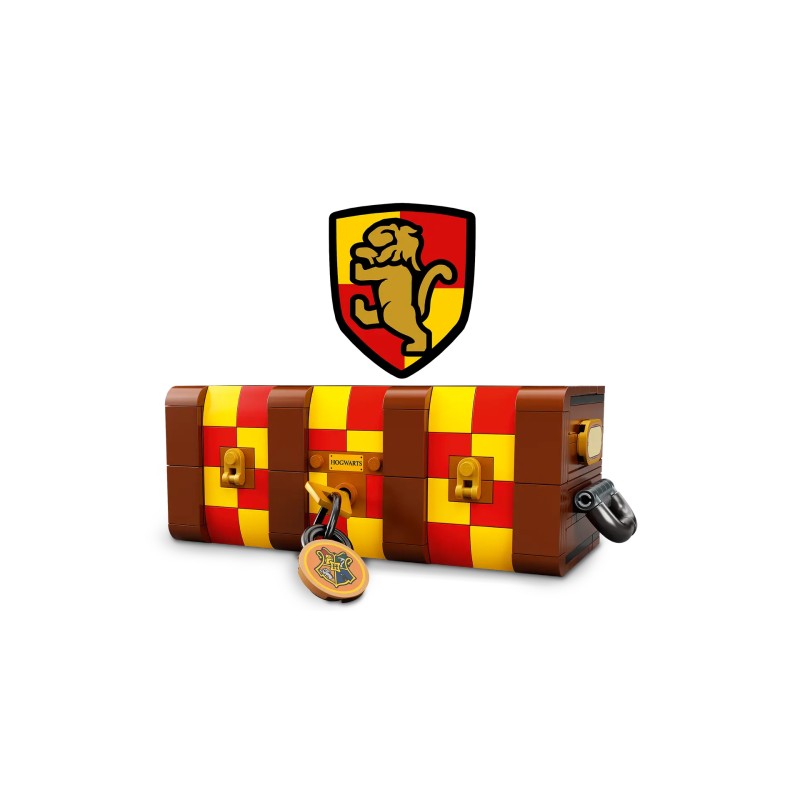 La fel ca și cufărul iconic al elevilor din Hogwarts, copiii pot adăuga diferite culori ale Casei Hogwarts și autocolante amuzante pentru a face această versiune din cărămizi LEGO proprie.Printre conținut se numără o selecție mare de piese de minifigurine inclusiv o gamă de păr și diverse nuanțe de piele astfel încât copiii pot construi până la 5 personaje din filmele Harry Potter și pot proiecta noi studenți Hogwarts proprii.