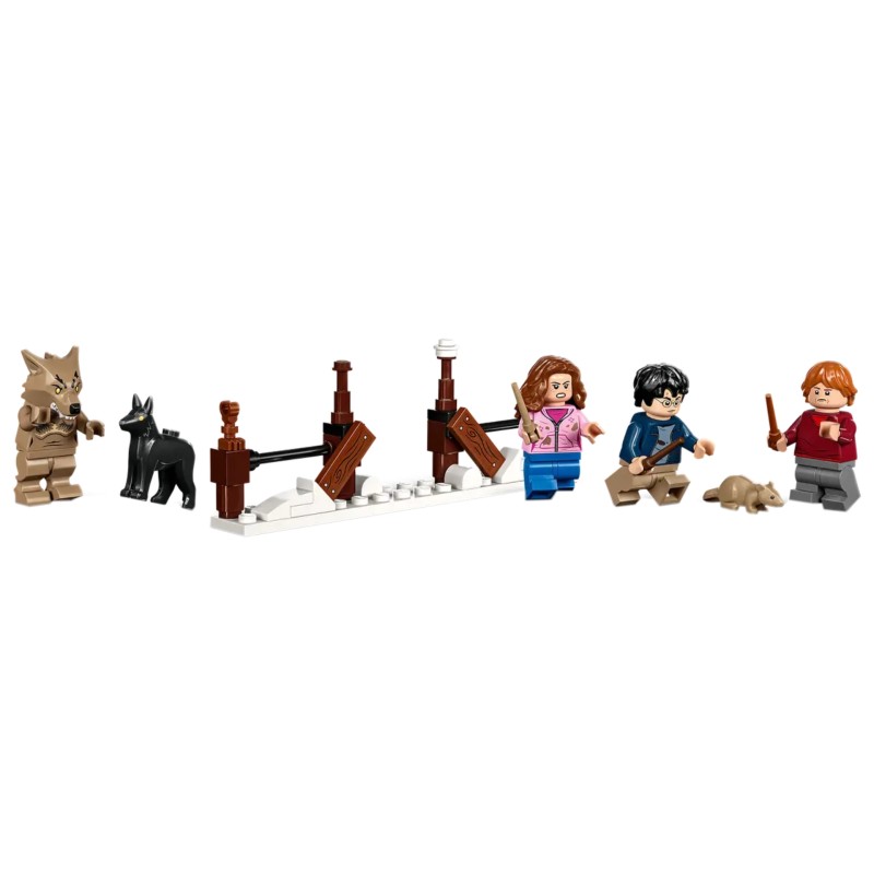 Include 6 minifigurine Lego Harry Potter: Harry, Hermione, Ron Weasley, Sirius Black, Peter Pettigrew și Remus Lupin care se transformă în vârcolac.
