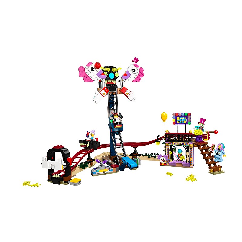 Și cu un rollercoaster, o cursă cu cădere și 5 minifigurine, scena este pregătită pentru o distracție imaginativă de joc de rol!