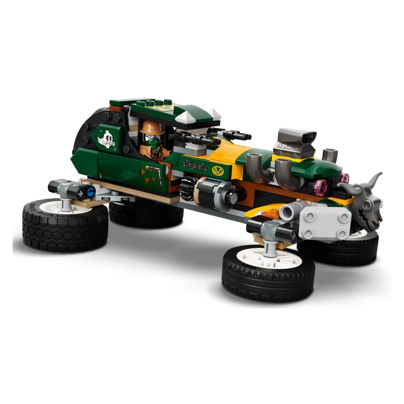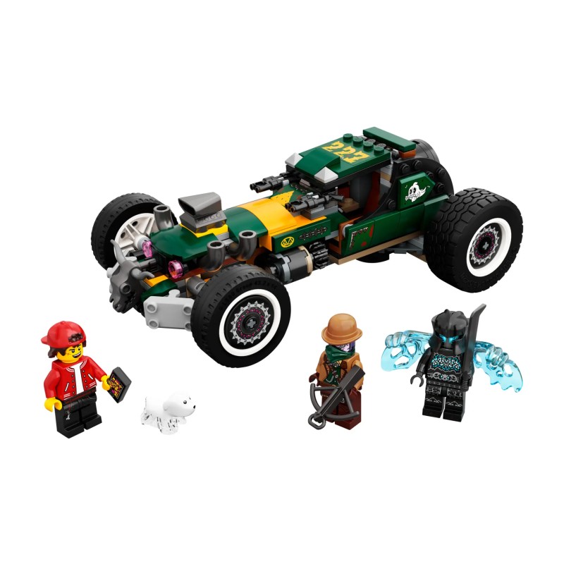Copiii pot, de asemenea, să comute roțile mașinii de la modul condus la modul zbor și se pot bucura de aventuri practice cu minifigurinele Jack, Vaughn și Shadow-Walker și o figurină de câine Spencer.