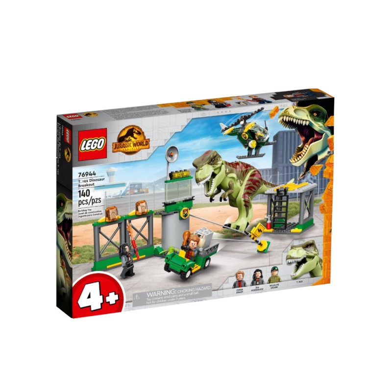 Copiii care iubesc dinozaurii și vehiculele cool se vor bucura să învețe să construiască cu acest set de joc LEGO Jurassic World Evadarea dinozaurului T. rex (76944).