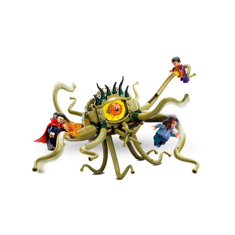 Acest set adaptabil include 3 minifigurine populare LEGO Marvel: Doctor Strange cu pelerina detasabila, Wong si America Chavez.