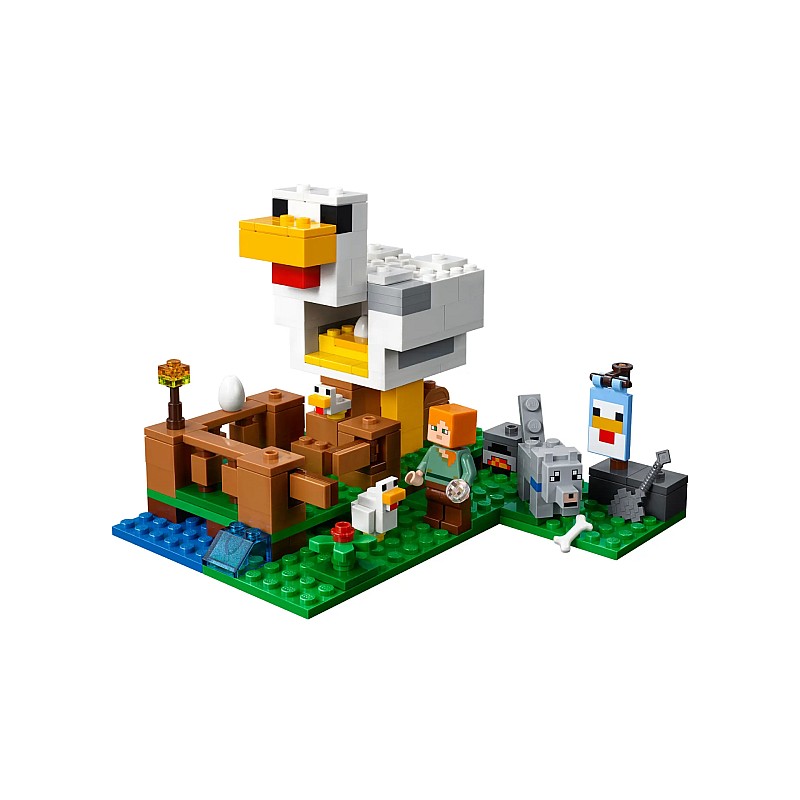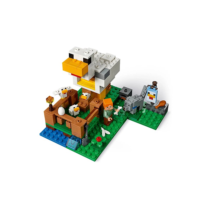 Setul include o minifigurină LEGO Minecraft Alex, plus figurine de pui și lup îmblânzit și 2 figurine de pui, un banner decorativ pentru pui, un țarc pentru pui cu poartă cu deschidere, un cuptor și o zonă cu apă și iarbă cu plante.
