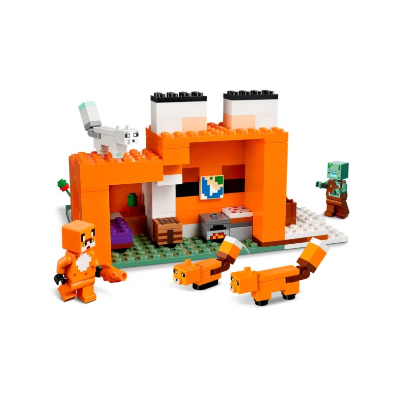 O varietate de personaje interesante, accesorii autentice și posibilități de joacă infinite fac din Lego Minecraft The Fox Lodge. Folositi-va abilitățile Minecraft pentru a construi o casă proiectată ca o vulpe care doarme!