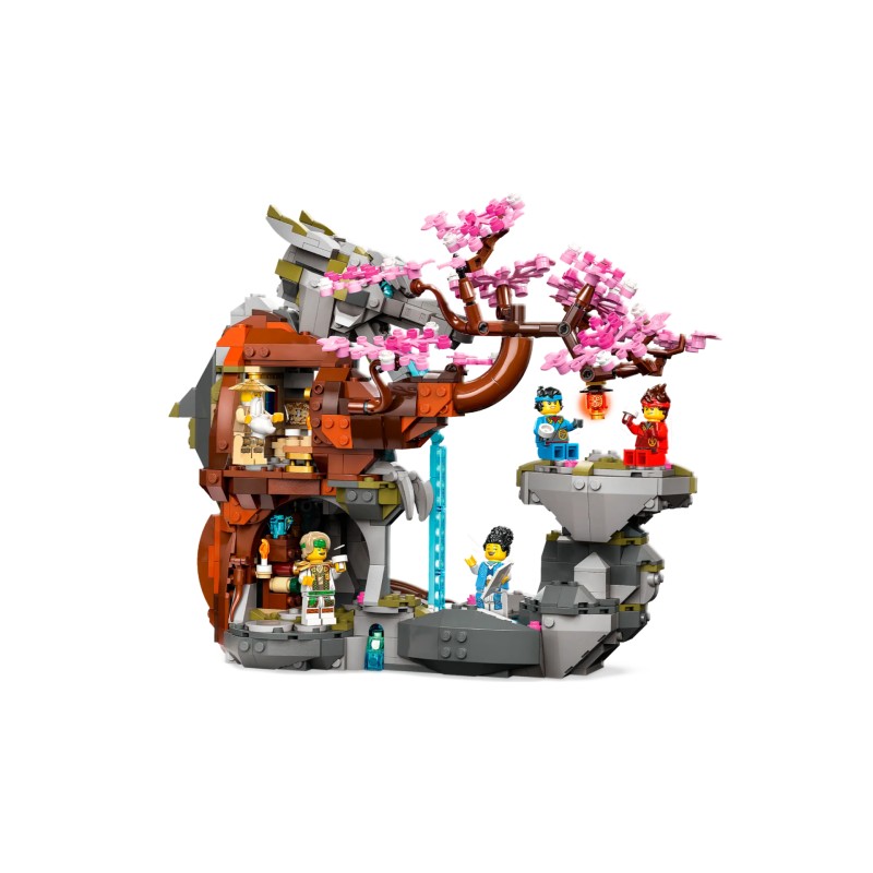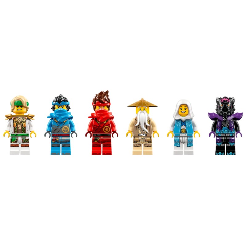 Acest model construibil este livrat cu 6 minifigurine cu personaje NINJAGO: Maestrul Lloyd cu un accesoriu de baston, Maestrul Wu cu un accesoriu de suliță, Nya cu 2 accesorii de sabie katana și o pereche de sai ninja, Kai cu 2 accesorii de sabie katana și un accesoriu de sabie, Euphrasia cu un accesoriu de baston și Lord Ras cu ciocanul său.