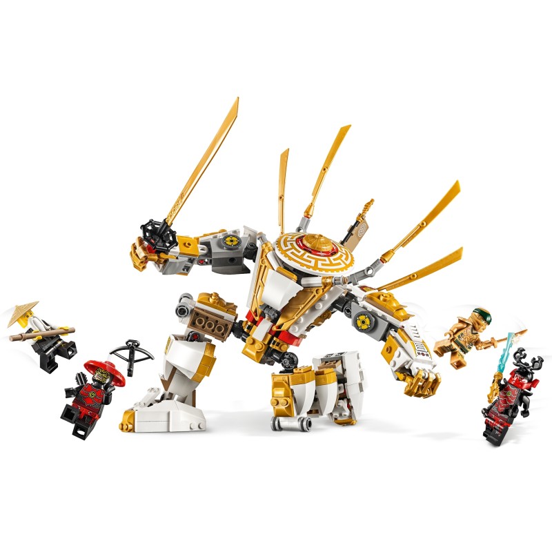 Copiii se pot bucura singuri de distracție sau pot împărtăși jocuri de grup cu prietenii în timp ce joacă roluri de luptă cu 4 minifigurine: Golden Ninja Lloyd, Wu și războinicii de piatră NINJAGO, generalul Kozu și Stone Army Scout.