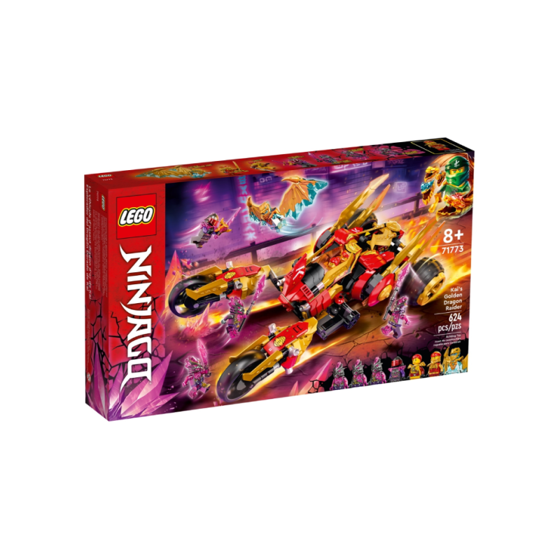 Fanii ninja pot recrea cele mai interesante scene din serialul TV NINJAGO: Cristalizat cu acest set de joacă Kai's Golden Dragon Vehicle (71773). Setul include un vehicul de teren cu cabină de pilotaj, 2 tunuri cu 4 trăgători și săbii de dragon aurii.