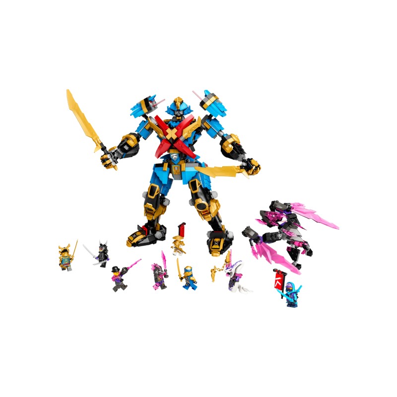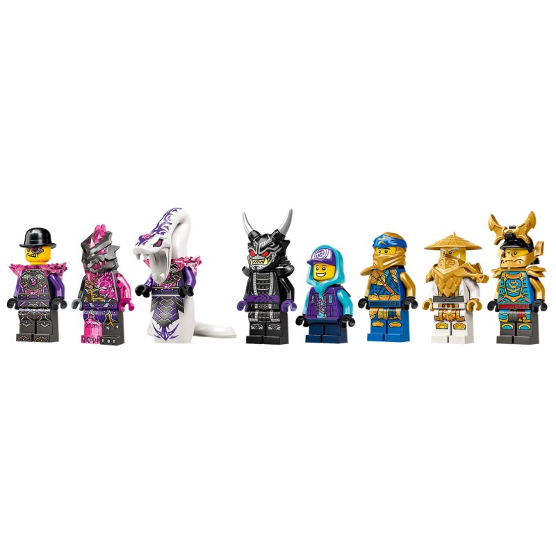 Acest set impresionant este plin cu 8 minifigurine: Samurai X Nya, Golden Jay, Master Wu, Oni Garmadon, Lil’ Nelson, General Pythor, The Mechanic și Vengestone Warrior. Multe dintre acestea sunt modele exclusive, nemaivăzute până acum, toate pregătite să desfășoare bătălii interesante!