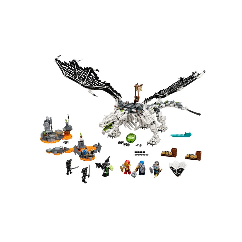 Fanii NINJAGO pot construi și juca cu setul de construcții și jocul de masă Skull Sorcerer’s Dragon (71721).