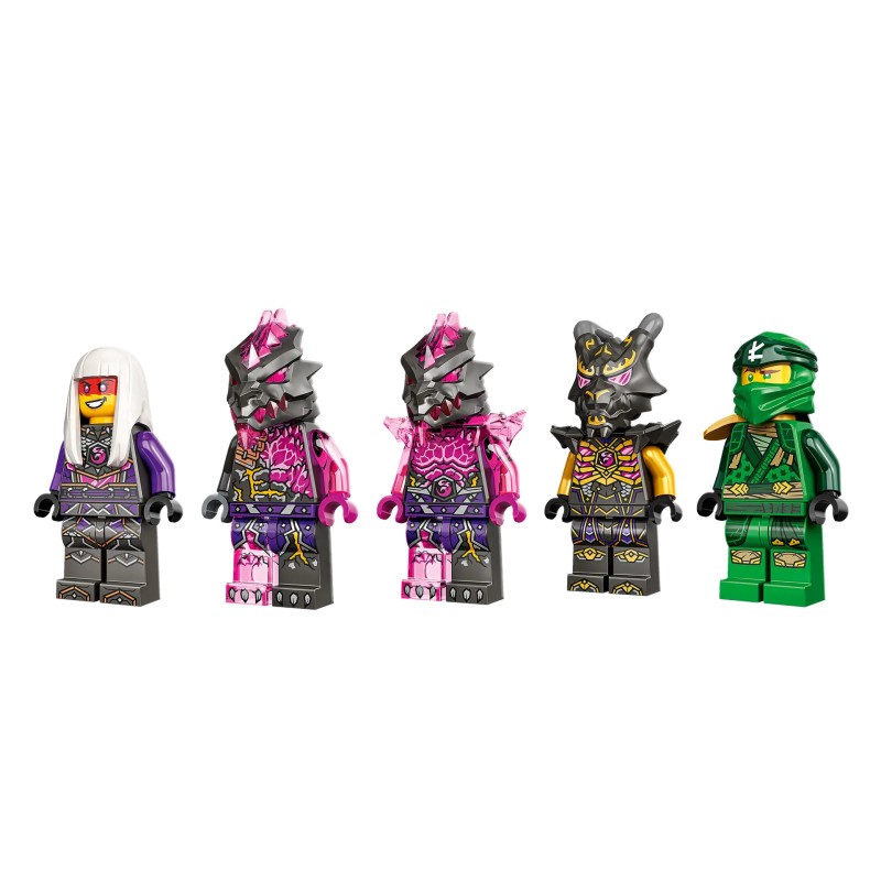 Această jucărie de construcție plină de distracție vine cu 5 minifigurine gata de luptă: un Lloyd exclusiv, nemaivăzut până acum, The Crystal King, Harumi, Vengestone Guard și Vengestone Warrior, toate înarmate.