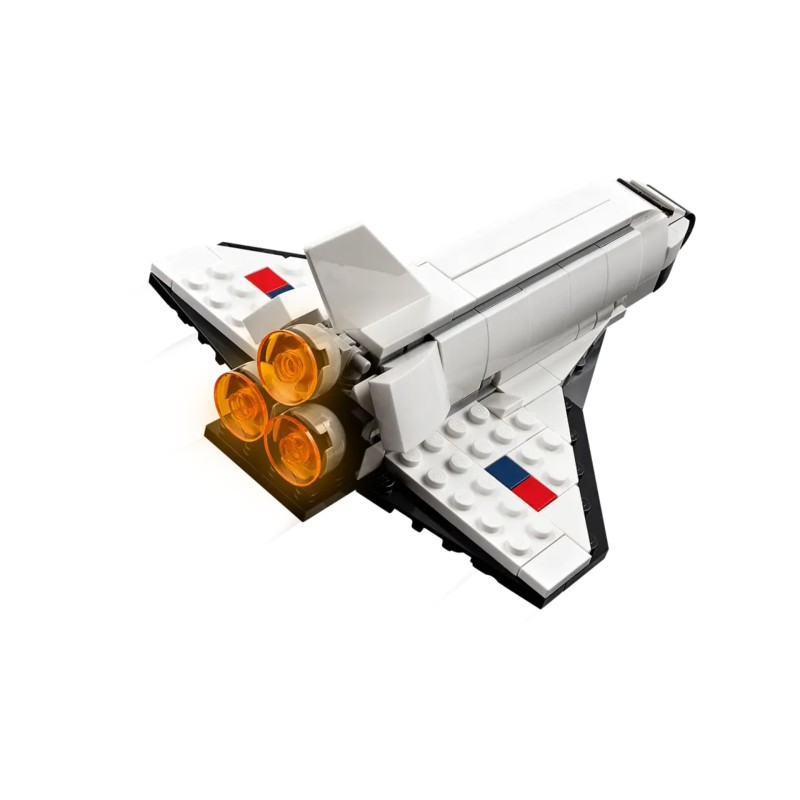 Se poate construi o jucărie Space Shuttle și apoi se poate reconstrui într-o figurină de astronaut pozabilă cu un jetpack și un steag de plantat, sau un model impresionant de navă spațială.