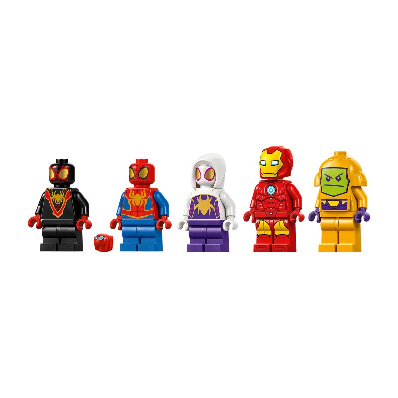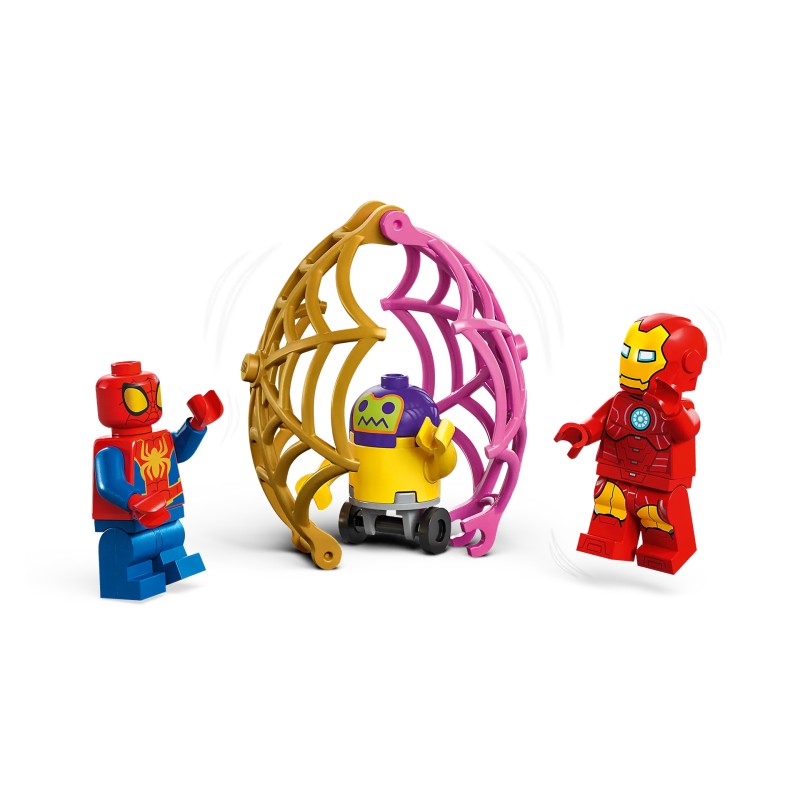 Acest set de eroi de acțiune LEGO Marvel include minifigurine cu Spidey, Iron Man, Miles "Spin" Morales, Ghost-Spider și Zola.
