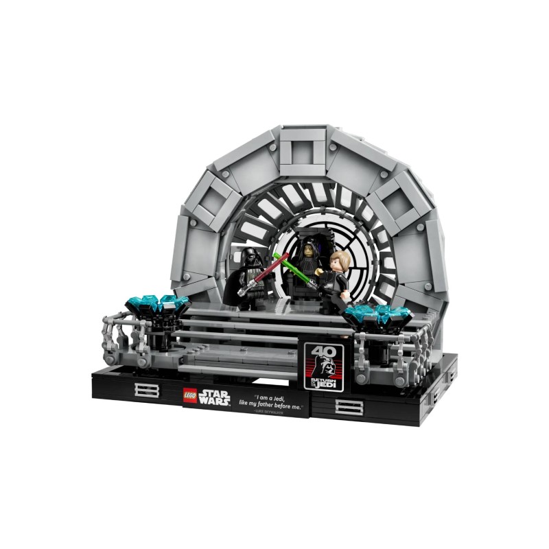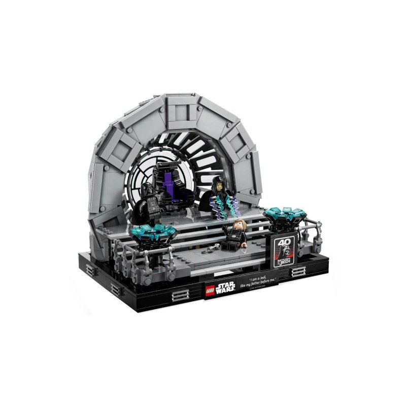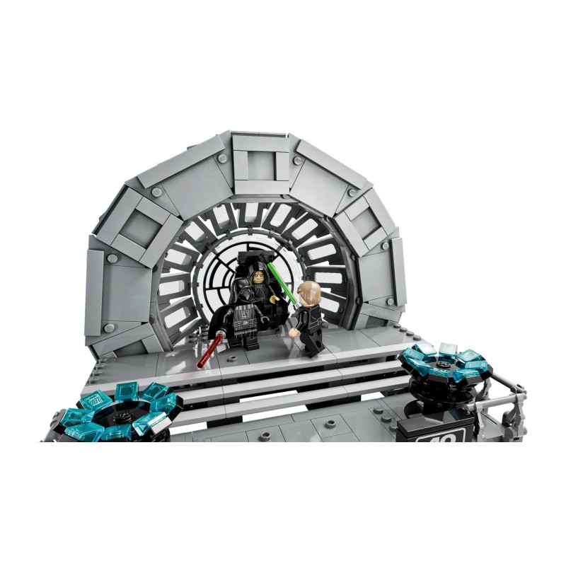 Retrăiește punctul culminant dramatic al trilogiei clasice Star Wars cu această dioramă Camera Tronului Împăratului (75352).